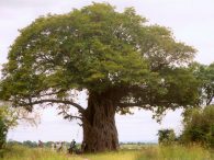 Magnificent bull elephant with ears out-stretched menacingly warning us alway from his herd of females and babies behind him.
